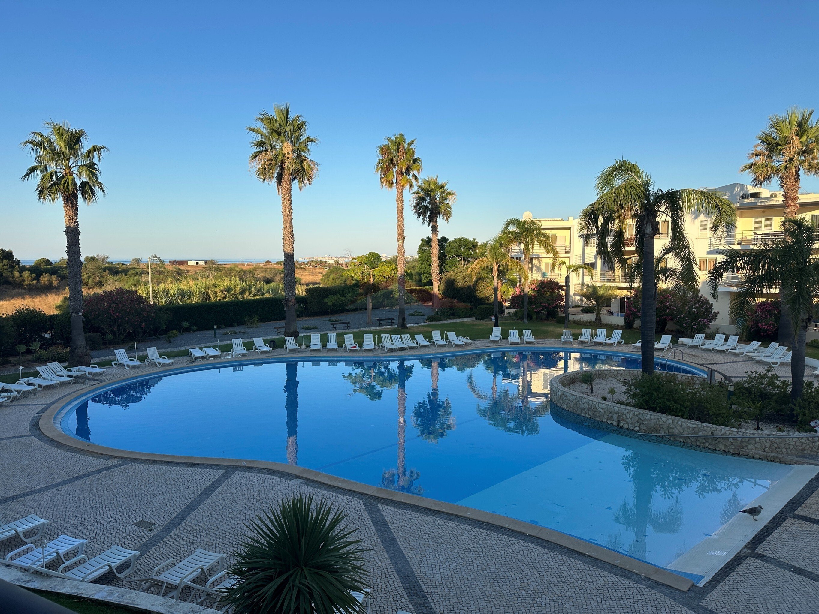 O espaço exterior é um verdadeiro oásis, com um amplo jardim e duas piscinas refrescantes para adultos e crianças mantidas durante todo o ano, ideais para os dias quentes do Algarve.